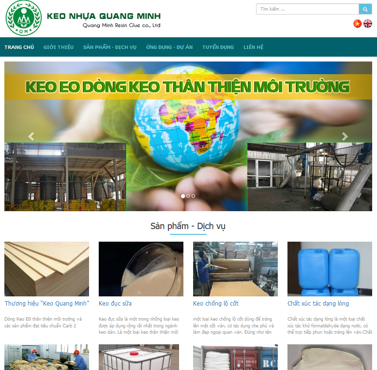 Keo Ure Formaldehyde phổ thông, Thương hiệu “Keo Quang Minh”, Keo đục sữa, Keo chống lộ cốt, Chất xúc tác, chất đóng rắn khử formaldehyde, Chất xúc tác dạng lỏng, Melamine, Polyvinyl Alcohol (PVA), Titanium dioxide"