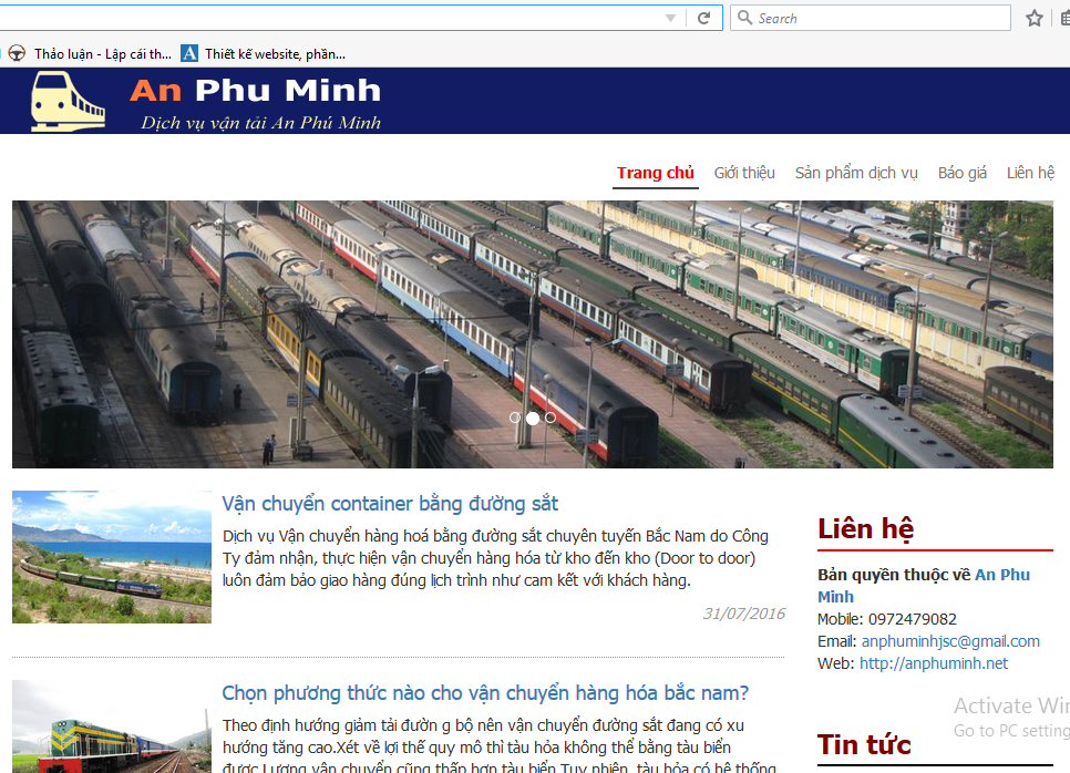2 tháng qua công ty AWAS JSC kết hợp với công ty dịch vụ vận tải đường sắt An Phú Minh đã thực hiện thành công xây dựng website công ty tại địa chỉ http://anphuminh.net/