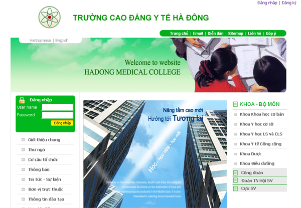 Cổng thông tin điện tử Trường Cao đẳng Y tế Hà Đông, với địa chỉ: http://cdythadong.edu.vn. Mục tiêu của trang là giới thiệu về Trường Cao đẳng Y tế Hà Đông. Trước đây là Trường Cao đẳng Y tế Hà Tây. Thông qua đây, mọi người có thể biết được trường đào tạo những ngành gì, khoa gì và nhiều thông tin bổ ích khác