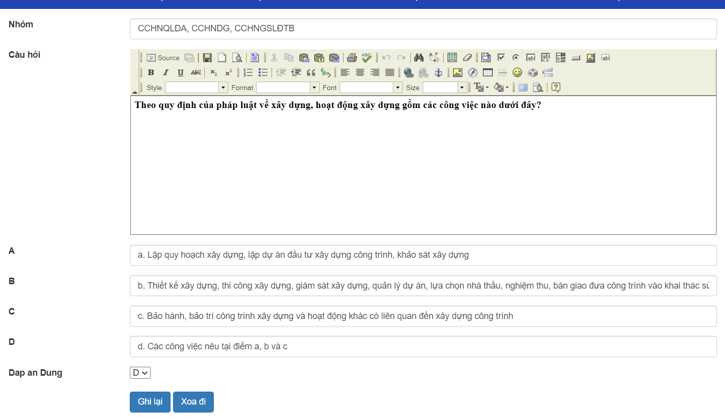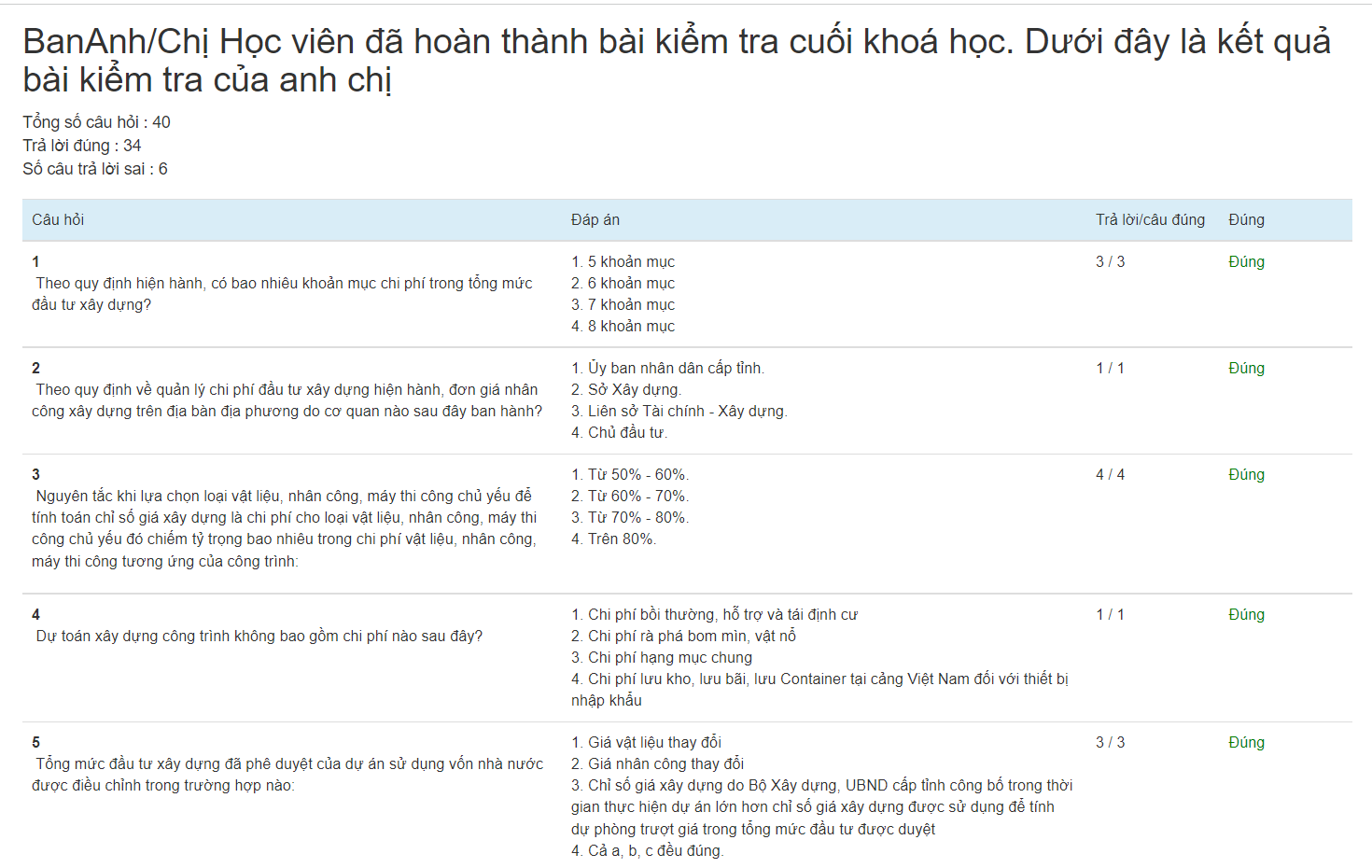 Thi : Khi thi online hệ thống sẽ ghi lại từng bước trạng thái làm bài, từng câu trả lời của thí sinh. Nếu có mất điện kết quả cũng sẽ cập nhật tại thời điểm làm bài cuối cùng. Kết quả thi online xem trực tiếp ngay sau khi làm bài. Kết quả làm bài thông báo rõ đâu là câu trả lời thí sinh, đâu là câu trả lời đúng. Câu hỏi này có được điểm hay mất điểm. Xem được lại kết lý do sai đúng.